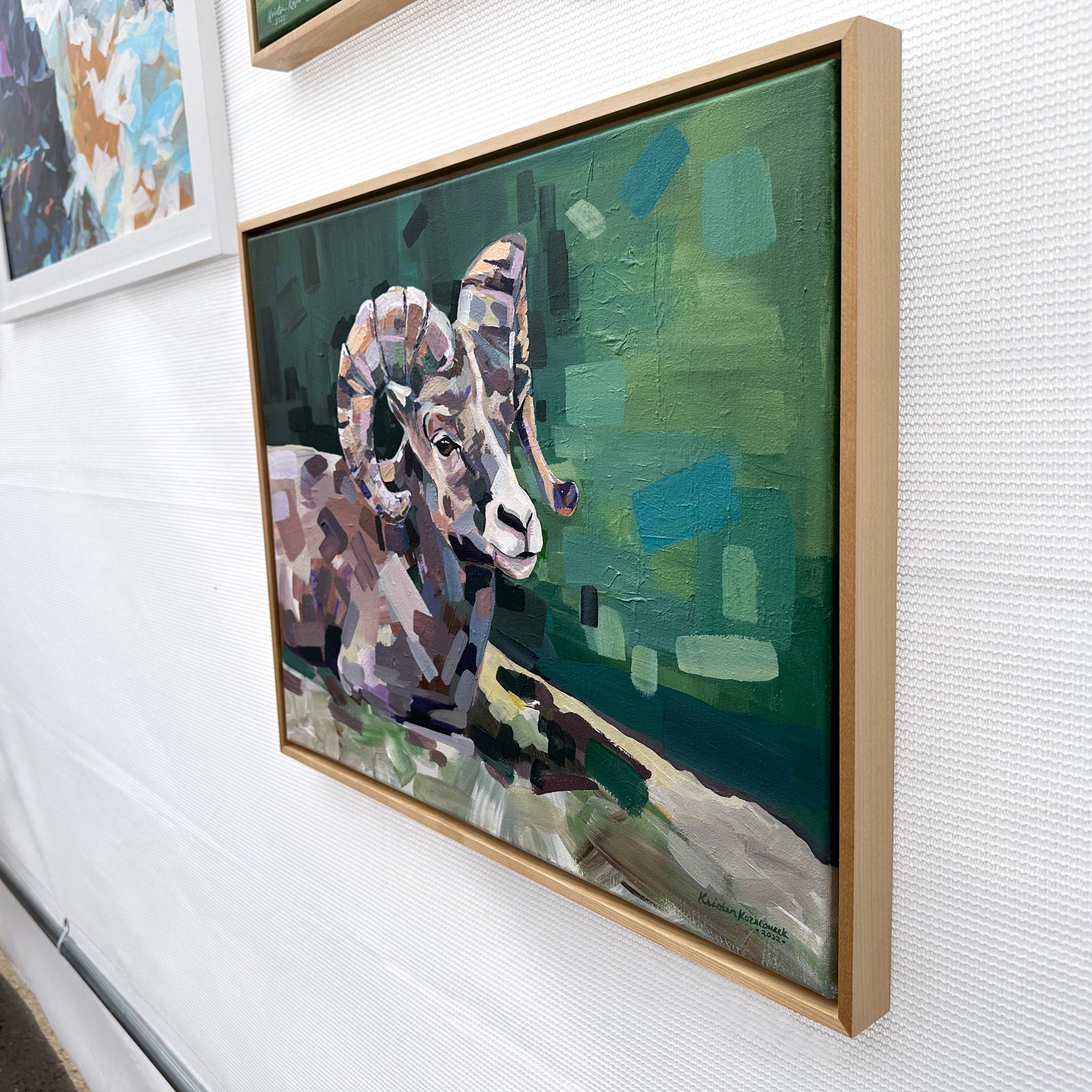 "Bighorn Sheep" is an original acrylic painting by Kristen Kozelouzek on canvas measuring 20" x 16". Maple float frame is included.