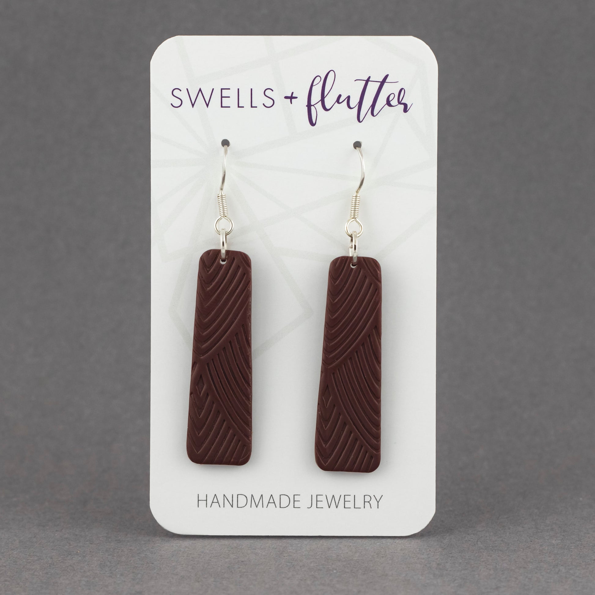 Long Bar Drop Earrings • Textured Brown
