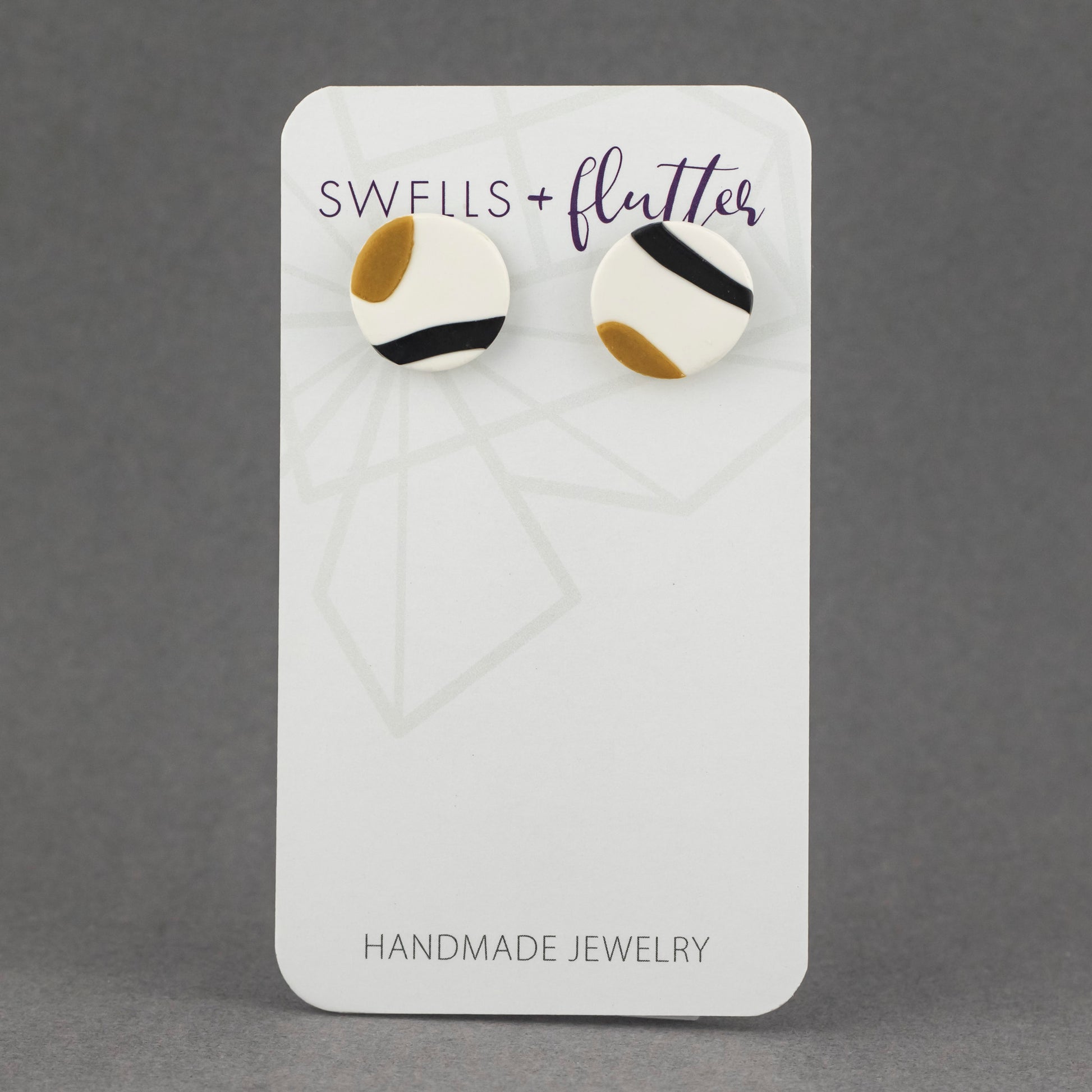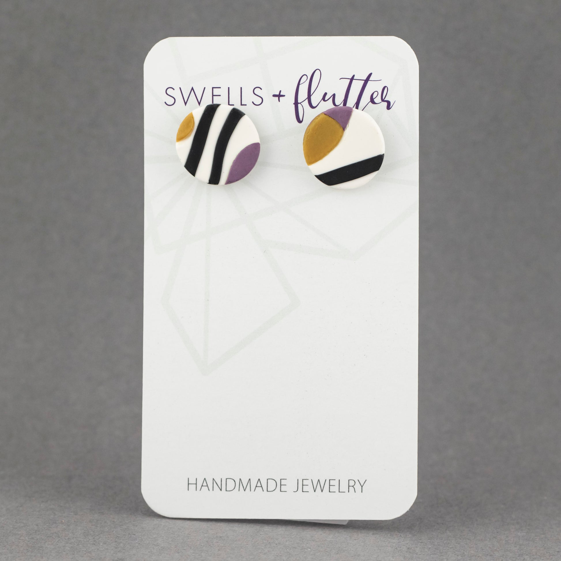 Our earrings are each handmade, sanded and assembled in small batches, from ultra-light-weight polymer clay.