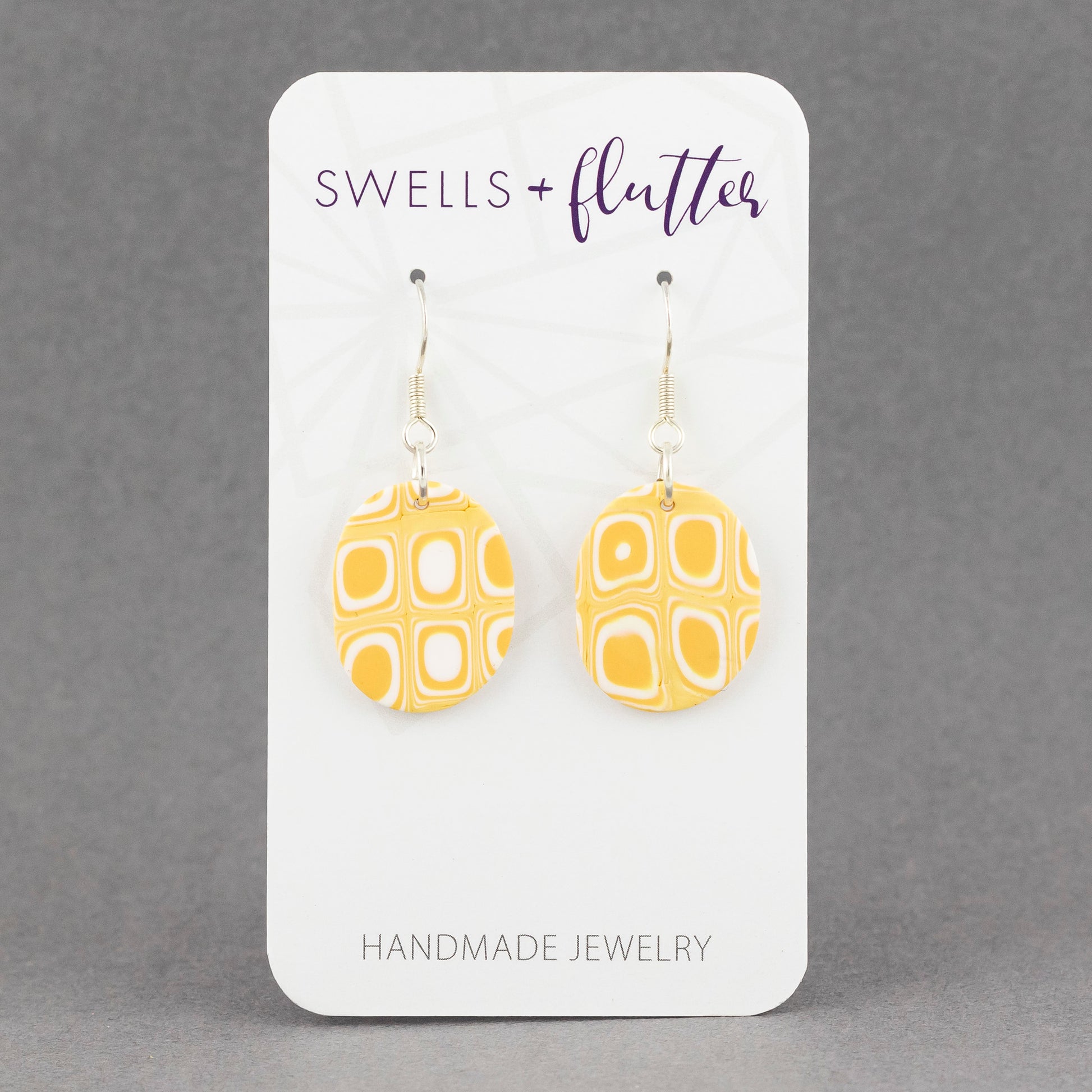 Our earrings are each handmade, sanded and assembled in small batches, from ultra-light-weight polymer clay.